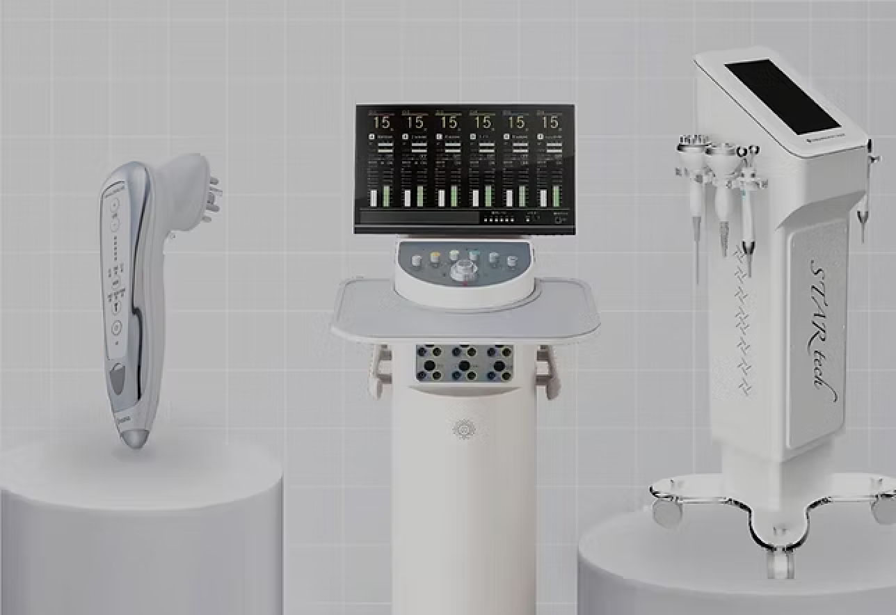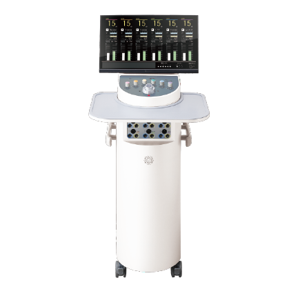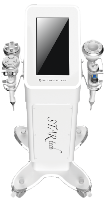医療現場で注目のテクノロジー「ハイボルテージ中周波EMS」搭載。フェイス・ボディ・ヘッドのトリートメントが可能。1台に機能が集約する事で痩身から導入まで行えるオールマイティなマシン。