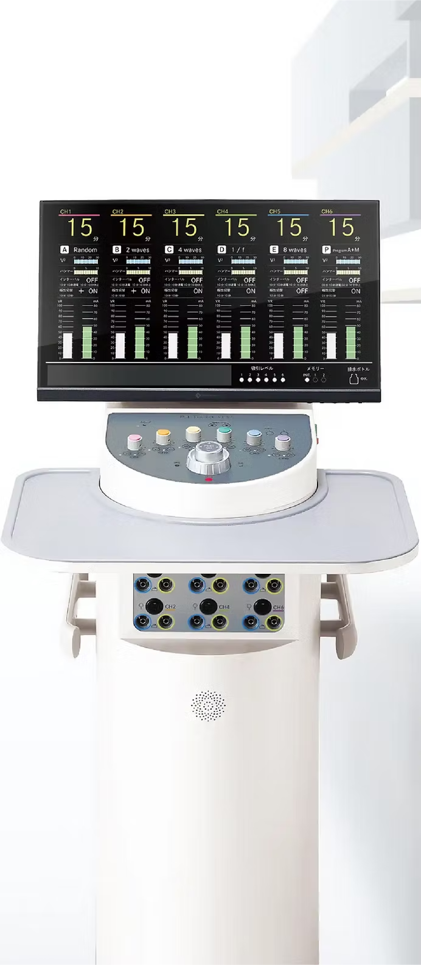 医療現場で注目のテクノロジー「ハイボルテージ中周波EMS」搭載。フェイス・ボディ・ヘッドのトリートメントが可能。1台に機能が集約する事で痩身から導入まで行えるオールマイティなマシン。