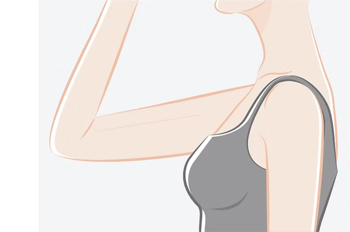 - 上腕全体を肘から肩、わきの下へ向かって流し、らせんを描くように動かします。