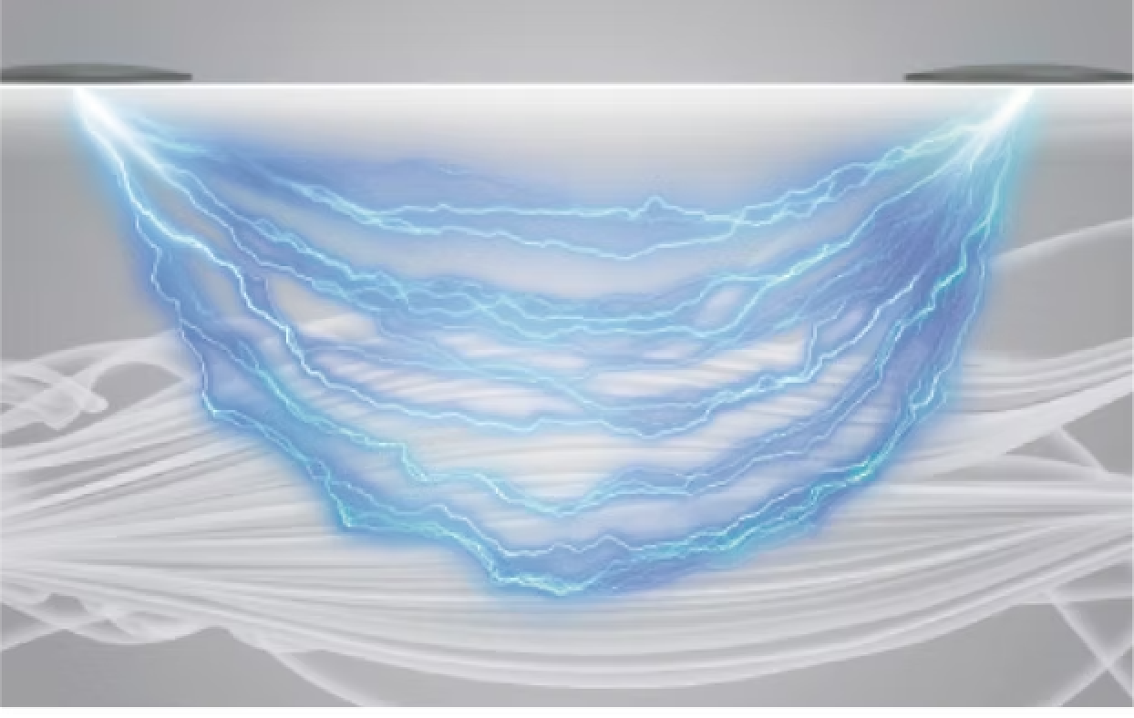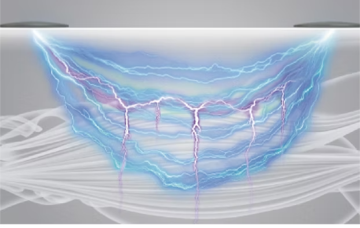 最大380Vp-pの電圧を加える高電圧ハイボルテージを使用し、従来の波形に重ねて相乗効果を生み出します。アウターからインナーまであらゆる層の筋肉に自在にアプローチができます。消費エネルギーが高く、より多くの筋肉を一気に動かすことができます。